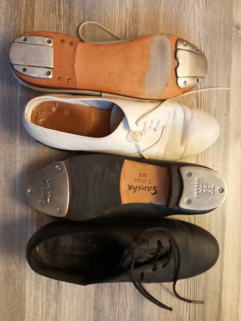 A jaké boty vlastně tanečníci mají…? Je většinou další otázka, která následuje, protože „to tak hezky klape….!“ Odpověď je jednoduchá – boty mají plechy připevněné na kožené podrážce, bota je většinou celá kožená, zavazovací. Nebo alespoň takové jsou naše stepky. Někdy je možné použít i boty na klasický step, zvuk je pak čistší, ale pak to není tak úplně clogging…