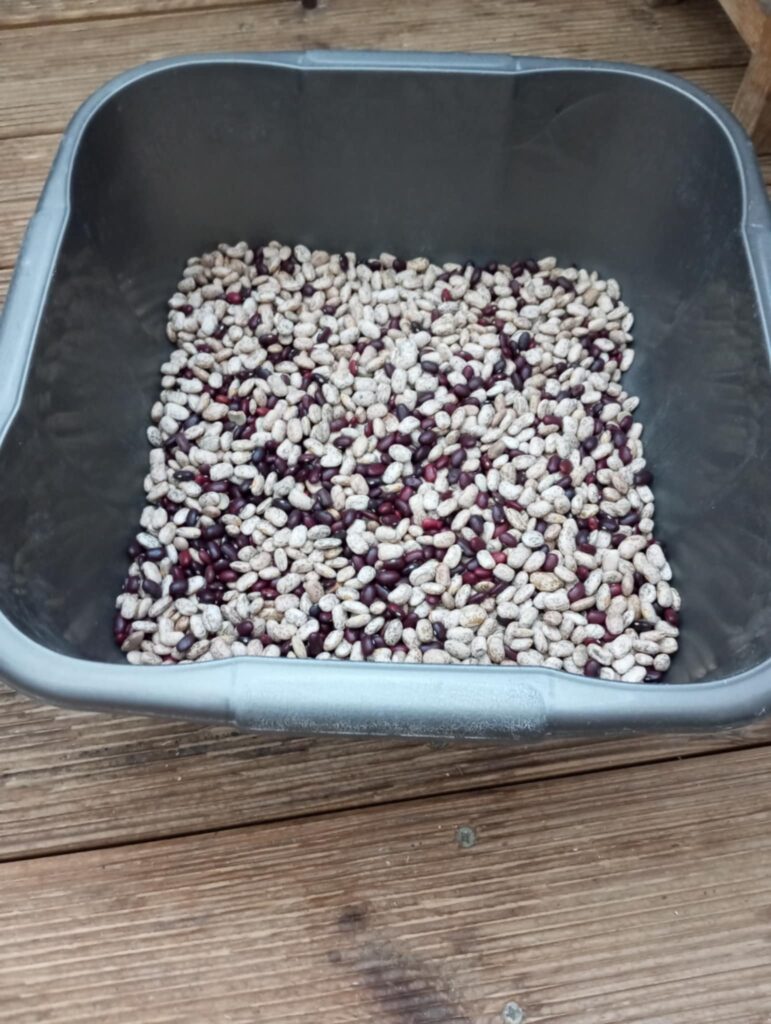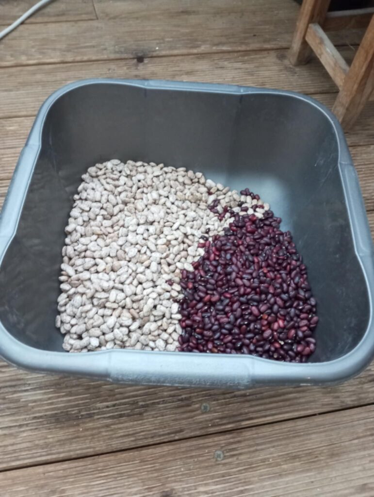 Fazole o kterých mluvím já jsou ty nejlevnější, co můžete koupit. Suché fazole nutno zmínit! 🙈 Přihoďte do košíku ještě i suchý hrášek. Doma vezměte nebo kupte lavorek, do kterého se vám plosky vejdou příjemně na délku i šířku. Do lavorku všechno nasypte – žádné vaření! 😀 Pokud máte rádi IKEU jako já, mají tam takové krásné malé skleněné oblázky (tuším, že v sekci s květinami) nebo je nasbírejte někde u moře či u řeky a přihoďte je tam taky. Cokoli, co je velké max. cca 4cm v průměru a je hladké a oblé.