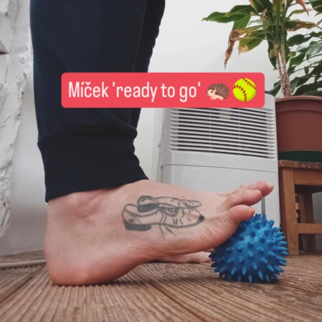 • 👣 Masážní míček je další možnost a varianta zmíněné masáže. Stačí si pořídit malý míček který má po celém povrchu bodlinky a každé ráno si na něm pojezdit s ploskou 🥎🦔 U čištění zubů třeba… 😉 Já ho mám u pracovního stolu takže si můžu případně pomasírovat nohu v průběhu dne. Míček má výhodu, že je pomasírování rychlejší.